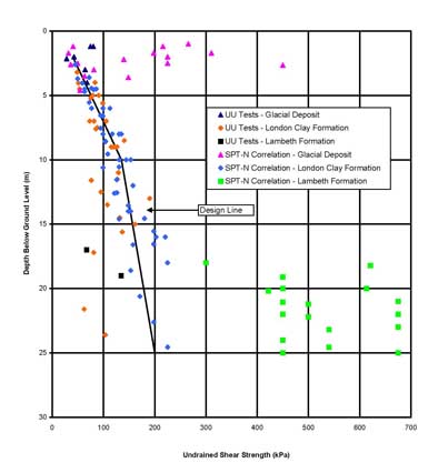 and silt bands within the glacial till, variable soil strength was anticipated. Therefore, in situ testing was undertaken to verify that